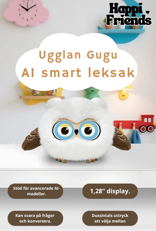 Varje detalj i HappiFriends är skapad för att ge ditt barn trygghet, glädje och lärande – från blinkande ögon till smarta AI-samtal.